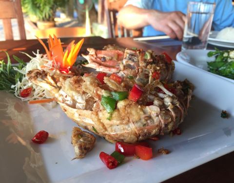 打一个电话就可以从周边酒店免费接送。海鲜都是老板亲自进的货。泰式咖喱蟹非常肥美,还有黄。野生皮皮虾比国内大几倍,根据你的口味烹调。住在兰塔三天,去了两次晚餐。每次光盘,太好吃了!色香味俱全,还可以看海景和落日。每桌都有蚊香,没被蚊子咬。关键价格和人民币很便宜啊!推荐。