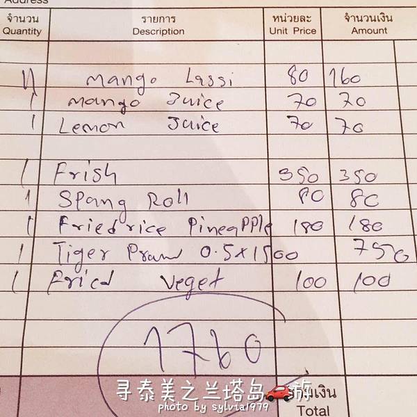 -AEC Supatra Restaurant -地址:91 Moo 8,Ko Lanta,Krabi 有农家乐感觉的小餐厅,是一对年轻夫妻经营的,服务都很热情周到,虽然海鲜不多,但都很新鲜,推荐香蕉煎饼、青木瓜沙拉、冬阴功汤,胡椒虾也很好吃。吃饱了还能喝一个椰子汁。