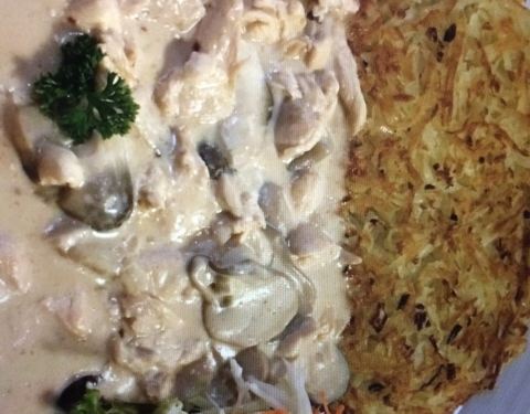 Zurcher Geschnetzeltes with Roschti 白汁蘑菇鸡配炸土豆丝