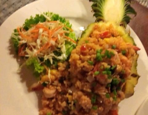 - ...还有很多泰国菜哦,要了菠萝饭味道挺不错的,炒猪肉这个菜很好吃,泰国龙虾片很好吃,米饭有点太湿了