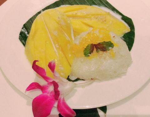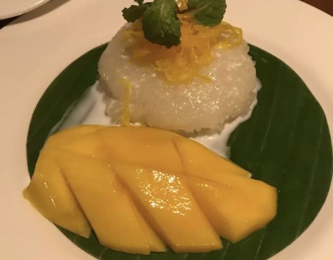 - ...吃的,没想到下雨,就在酒店里面吃了,不过这家饭店做的菜还挺好吃的,芒果糯米饭味道很不错哦,很甜