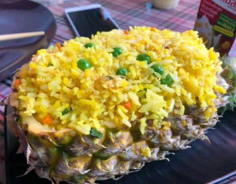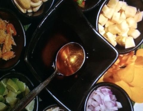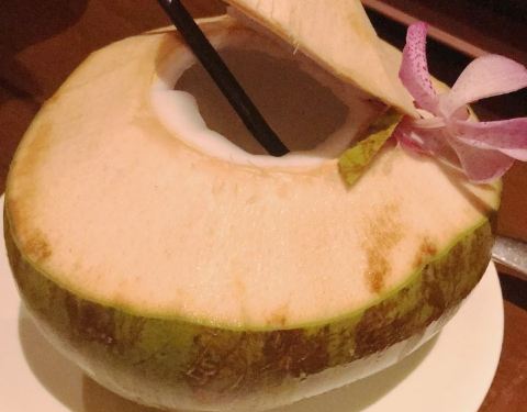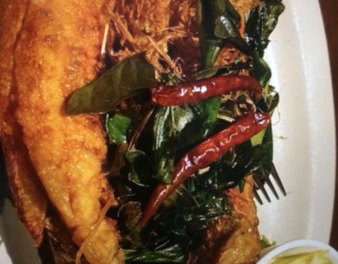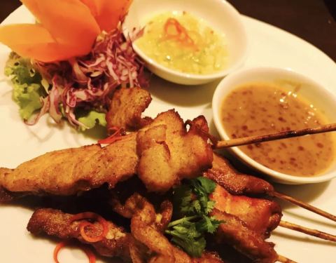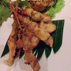 索菲特酒店内的餐厅,以泰国菜和印度菜为主。斑斓叶炸鸡非常开胃,新鲜鸡腿肉撒上咖喱粉、白胡椒粉、蜂蜜等调料腌制,以新鲜的斑斓叶捆扎好,高温油炸后,斑斓叶的香味渗透进鸡腿肉里,鸡肉肉质鲜嫩,沾泰式甜酸酱一起吃,酸酸甜甜的好滋味。