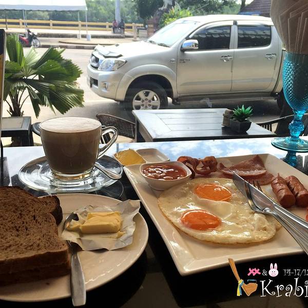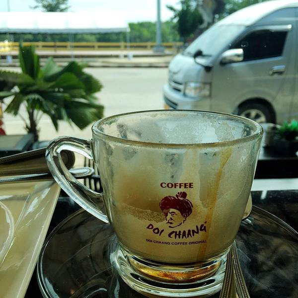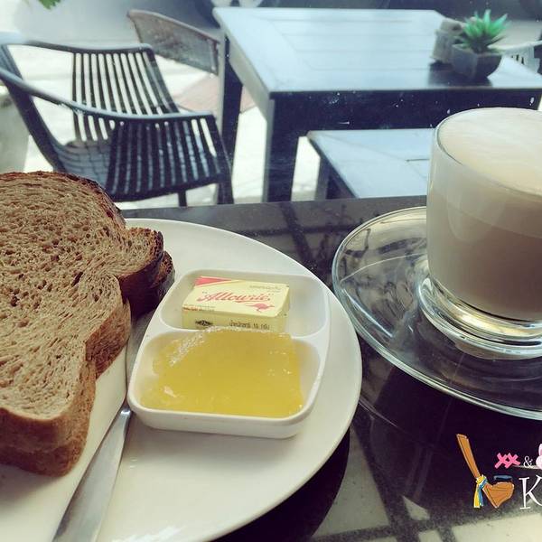 今天是旅程的最後一天了,也是唯一沒有包早餐的一天! 我們起來後收拾好所有的行李,努力地搬到了樓下,讓前臺幫我們寄存好行李就出去自尋早餐吃了~~ 酒店樓下就有一間咖啡店,不過看上去好像甜食比較多,就繼續往左邊走了 走到Doi Chaang Coffee,這間在清邁也看到過很多間,應該是泰國的連鎖咖啡店品牌吧? 看到沒什麼人,剛好可以坐在窗邊的位置慢慢享受早餐!