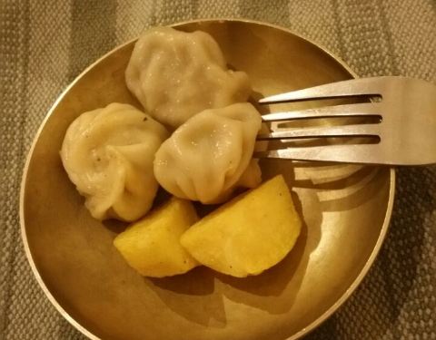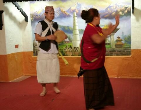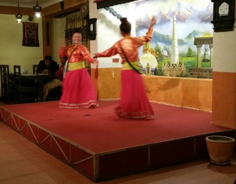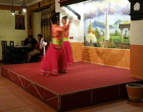 尼泊尔的地道美食——来尼泊尔不品尝一下当地的美食一定会留有遗憾的。我们在这家餐厅体验了当地的美食,他们上菜的速度很慢,地道的慢节奏,先是一道汤,然后是小包子类的小吃,然后是主菜和米饭,就是拌在一起吃而已,谈不上好吃,他们会用手抓着吃,我们不习惯,还是用筷子和勺子。主要是看他们的歌舞表演,虽然不是专业,但是热情足够,体验风情嘛。