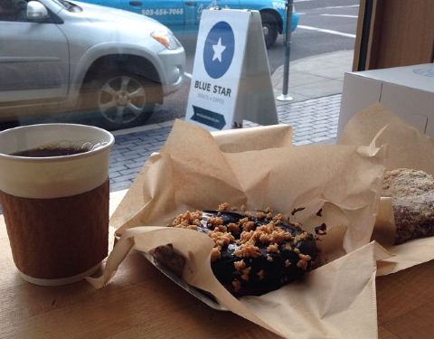 Blue Star Donuts has by far the best donuts in Portland. If you try to compare it to the ridiculously overrated Voodoo Doughnuts I'll smack you. Right in the face. Get the Blueberry Bourbon Basil.