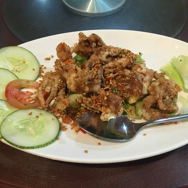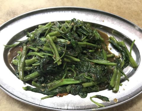 两个人点了三个菜,这次两个人所以没点他们的招牌猪手。点了个招牌鸡翅,抄通菜和海鲜咖喱。三样菜口味都不错。重要价格不贵。早点来就不必等位。