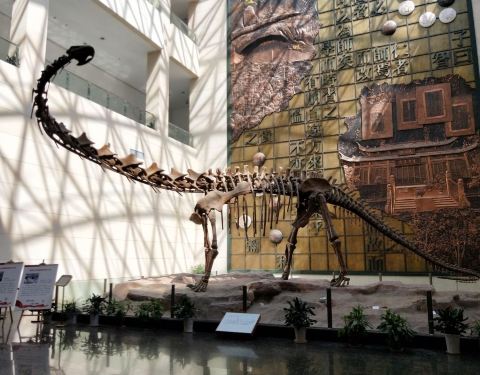 穿过府山公园,就是衢州博物馆。二楼“衢州六千年”展厅是重点,婺州窑古瓷展也可以一看穿过府山公园,就是衢州博物馆。在博物馆大厅看到的是一尊巨大的恐龙骨架化石,1977年在衢州江山境内发现。二楼“衢州六千年”展厅是重点,婺州窑古瓷展也可以一看。