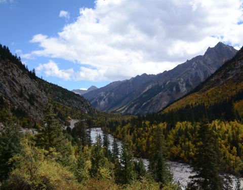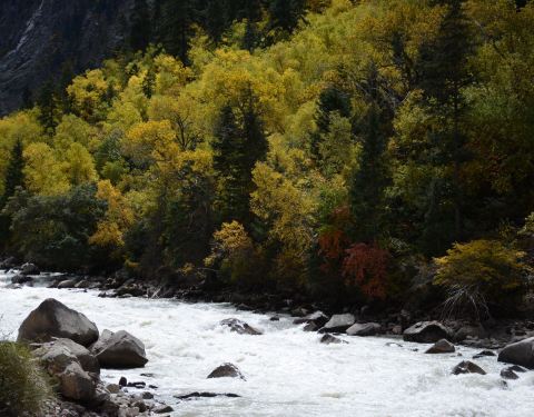 被眼前波澜壮阔的情景所震撼,在湖畔的断层间,湖中有几块巨石被湍急的河水劈开,河水呈汹涌之势飞流...站在然乌湖的尽头,被眼前波澜壮阔的情景所震撼,在湖畔的断层间,湖中有几块巨石被湍急的河水劈开,河水呈汹涌之势飞流直下,急流发出巨大的声响,震天动地,不断地撕裂着整个山谷。在此路过的人一般都会下车到...站在然乌湖的尽头,被眼前波澜壮阔的情景所震撼,在湖畔的断层间,湖中有几块巨石被湍急的河水劈开,河水呈汹涌之势飞流直下,急流发出巨大的声响,震天动地,不断地撕裂着整个山谷。在此路过的人一般都会下车到湖边欣赏这奇特的景观,也会有人冒险进入河中间的巨型石头上拍照玩耍。过了然乌湖,景观渐渐地变了,一路上原本光秃荒凉的高山披上了黄绿色的外衣,森林变茂密,郁郁葱葱;山体变陡峭,河谷中咆哮的江水也不再混浊,翡翠般的水流急速地穿过高山峡谷。沿着陡峭的山谷一路向下,始终与帕隆藏布相依相伴,连绵起伏的森林,白色耀眼的雪山,轻柔缥缈的云雾,不断缠绕在峡谷的两边。这里也是我在整个川藏线上遇见的最美秋色了。这一段路上的风景美到你自己都认为是在梦游,真的希望此时车轮停住,不对,应该是希望时间就此停住,如果自己是在看一部场景片,此处我肯定会按动暂停键,仔细的欣赏,慢慢的感受。 展开