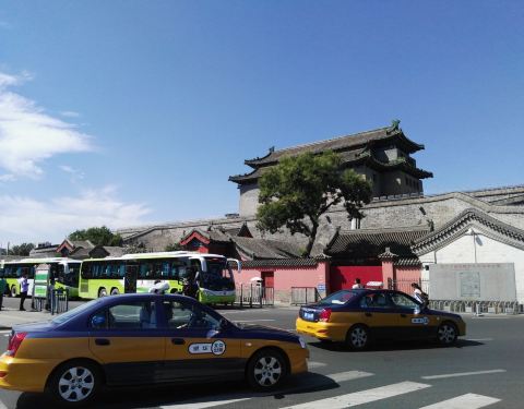 去八达岭长城坐汽车,位置就在德胜门下的公交车站。德胜门,距今应有500年历史了