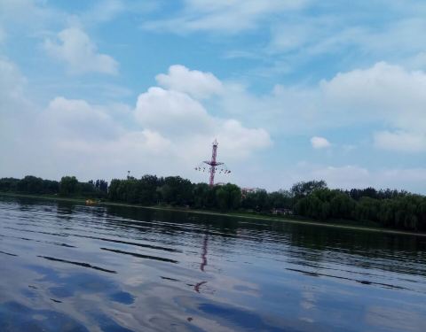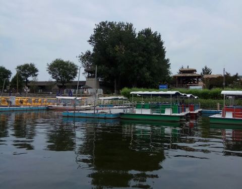 漕运码头属于大运河森林公园的一个景点,这里可以划船。带孩子玩,租了一种叫悍马的电动船,船速不快,一小时一百元,需要先交三百的押金。泛舟河上,看看森林公园的景色,带点小零食吃吃,挺惬意的。划船时那里都备有救生衣,需要大家都穿好,安全系数比较高。