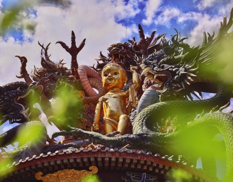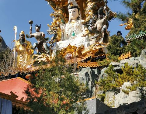 最魔幻颜值最高的庙宇! 自驾离市区约一个半小时车程 临快到时有大约二十分钟山路 门票免费 停车15 停车场有个车神庙 可能是吸引大量摩托车自行车爱好者的原因 面对九狮壁右手上去是观音洞 可 【景色 【趣味】以鸟瞰整个寺庙 面对九狮壁左手上去先是云雷阁 大钟和精美雕塑非常震撼! 对门是斋院都是素食 人均50 饭点要排队等桌(景区里甚至附近也没其他选择) 再往上走是大雄宝殿和财神殿等 室外巨大的哼哈二将和山顶的观音独一无二!
