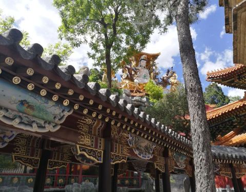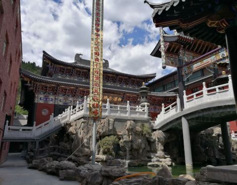 建筑独特 好看 寺里有个吃素斋的 都是素菜 味道还可以 价钱也便宜 景区因为有个车神庙 骑行的人很多
