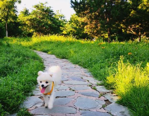 自从发现这条近路后,天天过来遛狗。早上一睁眼就起床,趁着凉快。五点多遛狗的人已经好多了。