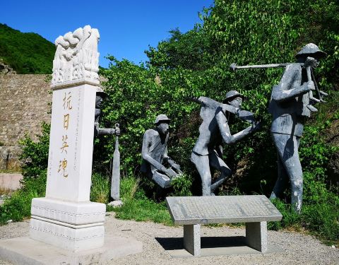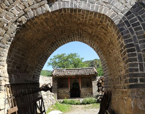 长峪城村往上走 一些农家院的尽头 有一处明代长城的标识 沿着正在铺装的地砖和正在刷漆的栈道往上...