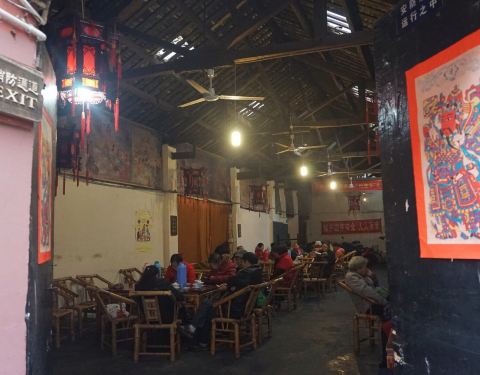 ✨成都景点打卡✨ 来文殊坊参观,里面很大,而且主要以商店为主,搜了下附近的景点,离得最近的便是...✨成都景点打卡✨ 来文殊坊参观,里面很大,而且主要以商店为主,搜了下附近的景点,离得最近的便是这里,于是便跟着导航一路走来,虽说是景点,其实更是一个茶馆,成都的茶馆文化由来已久,来到这边,便能看到...✨成都景点打卡✨ 来文殊坊参观,里面很大,而且主要以商店为主,搜了下附近的景点,离得最近的便是这里,于是便跟着导航一路走来,虽说是景点,其实更是一个茶馆,成都的茶馆文化由来已久,来到这边,便能看到很多的茶馆,里面坐着悠闲闲聊的茶客们。 这个景点也是如此,远远地便看到了大大的招牌,底下是一条小巷,小巷的狭窄让我一度以为自己找错了路,亦或是该景点已经不存在了。进来后,才发现是自己多虑了。在左手边就能看到,门口有宣传,关于古娘娘庙道观的介绍。 有一定时间的历史了,创建之初,由诸葛亮亲自选址修建,有营业时间,从早上七点到晚上六点,旁边的休息室便被开发为了茶馆。 5块钱一杯茶,入口处是收费处,在这边交钱取茶,随意选位置。这里没有什么游客,望眼看去,只有我一人拿着相机来回穿梭,其余的额都是本地人,满耳都是成都话,虽不是有意窃听,但每一句似乎都能听个一知半解,不懂四川话,也不会有交流困难。这边以老爷爷老太太为主,没有什么年轻人。大家喝茶聊天、打牌、织衣服,生活气息十足。据说夏日的时候,人多到里面坐不下,大家便都搬了凳子坐到门外。 一间小庙,一半是喝茶聊天的市民生活气息,萦绕着人间烟火,一半是诵经的人,香火不息,第一次在一个庙中见此情境,还是有些惊喜的。 展开