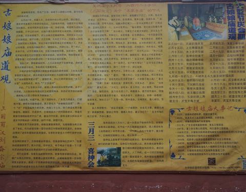 这个景点也是如此,远远地便看到了大大的招牌,底下是一条小巷,小巷的狭窄让我一度以为自己找错了路,亦或是该景点已经不存在了。进来后,才发现是自己多虑了。在左手边就能看到,门口有宣传,关于古娘娘庙道观的介绍。
