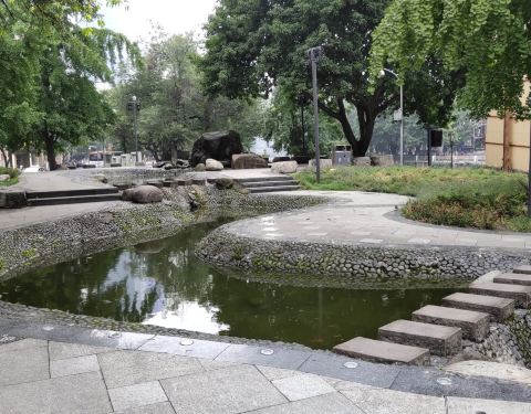 记念成都冶水历史的主题公园,面积近一万二千平方米。主题雕塑“水的丰碑”,以古代开明古蜀国时期的“石笋”,浮雕了古人治水图景,集中展现了成都”因水而荣”,“因水而兴”的历史。