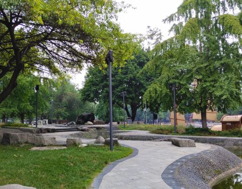 合江亭对面的思蜀园是一个以治水为主题的小公园。园内5根石柱上记录了成都几次大型治水工程的相关资料。