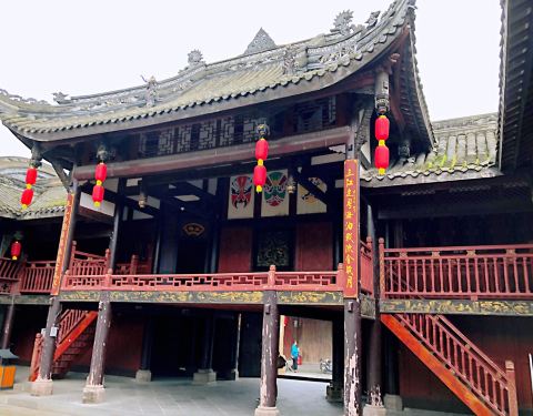 元通古镇上最气派的就是这个广东会馆。 门楼子很大,又有漂亮的雕刻,看着很喜庆。戏台不如黄龙溪元通古镇上最气派的就是这个广东会馆。 门楼子很大,又有漂亮的雕刻,看着很喜庆。 边上不远就是江西会馆,陈旧简陋到不提也罢,对比之下,就感觉广东会馆太土豪了。 进去后是一个不小的四合院,有比较精致的木刻...元通古镇上最气派的就是这个广东会馆。 门楼子很大,又有漂亮的雕刻,看着很喜庆。 边上不远就是江西会馆,陈旧简陋到不提也罢,对比之下,就感觉广东会馆太土豪了。 进去后是一个不小的四合院,有比较精致的木刻。不过2楼没有开放,一层也没有什么可看的,就是一个四合院,边上的厢房很小,而且里面空无一物,家居都没有。 转过来是个小戏台,也没装饰。 实话说,门楼子不如洛带古镇的会馆;戏台不如黄龙溪。 反正是古镇标配,看看即可。 展开