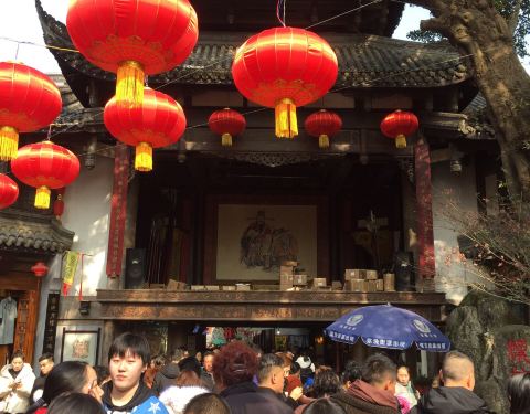不是很喧闹,但是沿途有很多小遗址,扫描旁边的二维码,还有免费的解说。成都不愧是三国故地