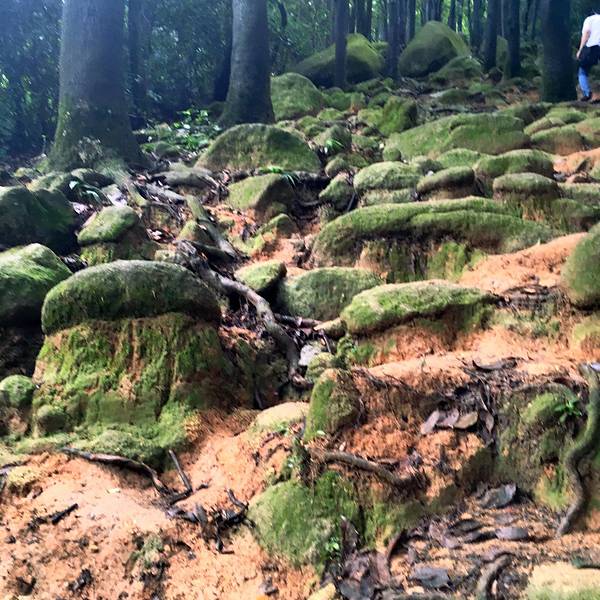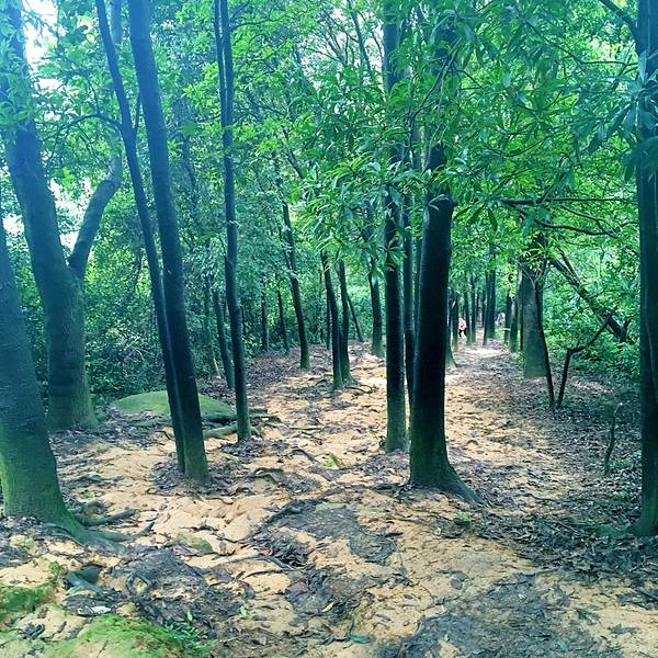 火炉山,一直听说有点陡,有点危险,而且很小,所以,一直都不想去火炉山。可,今天我们心血来潮,在时而下雨,时而太阳的天气,想去爬爬火炉山,因为天气很凉爽,爬山也不热。可是,一到火炉山,有点失望,我们从南门进去,走了几分钟,一路上都是乱糟糟的,很脏,而且没有任何游客的气息。慢慢的走,人渐渐多几个。大概走十几分钟,我们选择了最陡,最快捷的小径爬到山顶。差不多20分钟就可以爬上去,跟着某人的健步如飞的步伐,时而觉得像猴子跳来跳去,时而又过来在我眼前喊加油!我们就这样一口气爬上山顶,可是一点都没有感觉到山顶,因为周围都是树,只有一个亭子,还有几块石头,可以站在石头上吹风也是蛮凉爽的。唯一觉得到山顶感觉的是在猪头石上面,也就是山顶下来的几步路往上走就可以到,有一览众山小感觉了。可是猪头石是哪个呀,一点也不像。