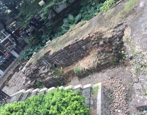 ...路与人民中路交接处,面积不大,有一条不到十米的观赏廊,以前可以下古城墙,现在拦住只能从上往下看