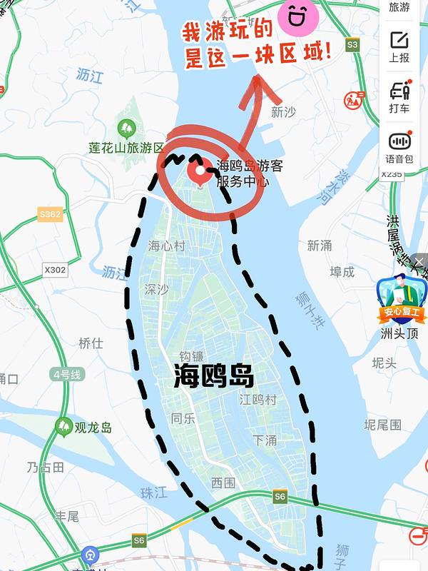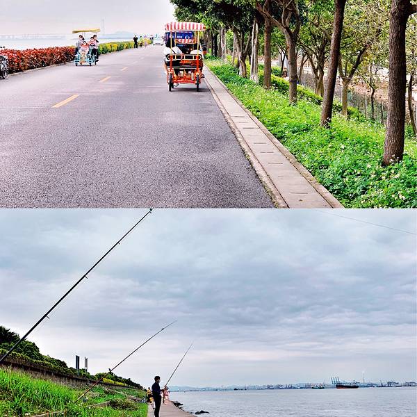 🔹这里有很长的海岸线,你可以在草坪放风筝搭帐篷野餐,可以租情侣脚踏车环岛游,可以开车...🔹穿过南沙大桥,向海鸥岛出发。