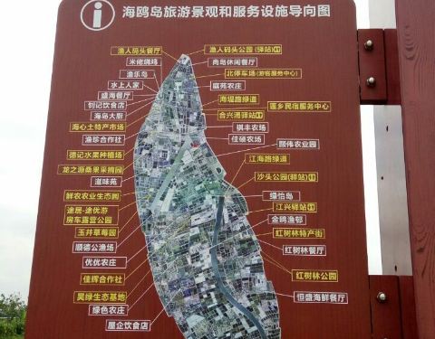 海鸥岛位于番禺区的莲花山对面,是珠江入口现在还没有被开放的生态小岛,还保留了原始的农作方式,岛内以种植水稻、香蕉还有养鱼等为主业,一派田园风光,是广州市民周末出游的好去处。海鸥岛的海岸线很长,岛上有沙北、沙南、江鸥、海心等4个行政村。岛北端的海鸥大桥联通了莲花山水道与岛外,一条13公里长的公路由北往南贯穿全岛。所以租借单车在这条公路上慢慢的骑行是较好的游览方式,一边吹着海风,一边听着船只鸣笛的声音,看海天一色,非常的惬意。这条路从头骑到尾的话大概要一个半小时的时间,租借单车非常方便,路上也有驿站可以上厕所或者休息。岛内以种养业为主,种植的都是水稻、香蕉、果树、花卉这种,稻田里还养了鸭子、禾虫和各种鱼类。春天鲜花很多,秋天则是瓜果飘香。这里的蔬菜水果都很便宜,质量都很好,可以买上一点。有兴趣的话还可以亲自到田间采摘各种自己喜欢的瓜果蔬菜。有很多农庄都提供采摘游览还有垂钓项目,可以一试。