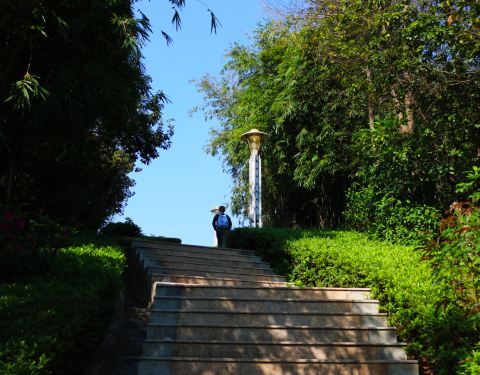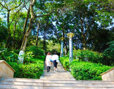 就在地铁官洲站,适合骑单车环游。基本景点有揽胜园、叠翠园和水墨园,揽胜园近B出口,叠翠园就在C出口,水墨园离地铁稍远,可骑车去,或在A出口搭乘353环线,在水墨园站下。