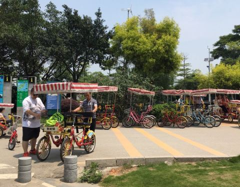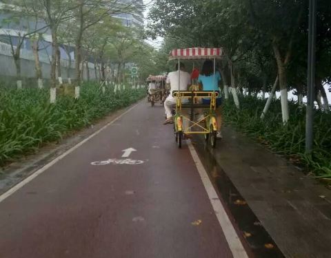 双人或者多人自行车不错,25元一个钟,押金300元