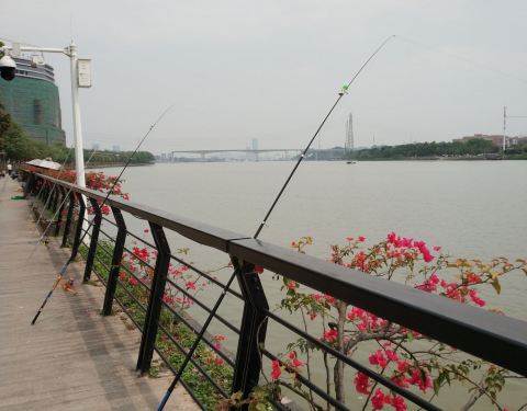 广州国际生物岛垂钓》♬ ♬ ♬ ♬ 珠江两岸万花香,白鹭徊翔游艇忙