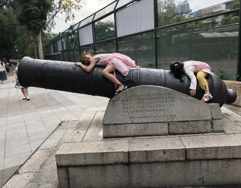 住在沙面的白天鹅宾馆,晚饭后当散步,带娃去看看在沙面公园里的炮台遗址。别抱太大希望,也就是随便看看,就是炮台遗址,我不该期望成博物馆。倒是公园里能看到珠江,景还不错