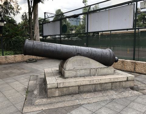 可能是放在沙面岛上的一个花园里面。这个沙面岛上的炮台其实啥也没有。就一块纪念牌这个沙面岛上的炮台其实啥也没有。就一块纪念牌。简短写了几句话。据说炮已经挪到别的地方去了。可能是放在沙面岛上的一个花园里面。