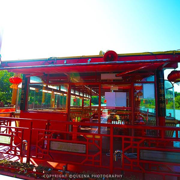 游船外观造型设计古典优雅,充满岭南特色,设计融合了传统岭南园林建筑特色和彩玻璃花窗等元素