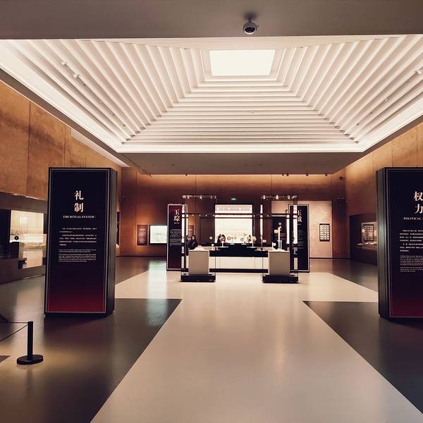 良渚博物院位于余杭区良渚镇,良渚和周边的遗址出土了大量四五千年前的精美玉器。在良渚博物院不仅可以一睹它们的真容,还能通过各种互动体验了解良渚文化的前世今生,带小朋友来寓教于乐也不错。良渚博物院的建筑本身就是一件艺术品,由英国设计师操刀设计,是座以“一把玉锥散落地面”为灵感的当代建筑。良渚博物院内部共有发现求真、良渚古国、良渚文明三个展厅,其间穿插着三个天井式的露天庭院,以良渚文化的代表元素为装饰。穿梭在这个建筑空间内已然是一种享受。各展厅看点走过前厅“站在杭州看良渚”,来到第一展厅“发现求真”。这里用蜡像复原了当年考古工作者发现良渚的场景,可以感知到良渚文化逐渐为人所知的过程。第一展厅后还有一个体验教室,有考古小知识图解、案例和一些互动游戏。走出第一展厅便是玉璧庭院,玉璧造型的装饰在水中显得很有诗意,四周的美人靠可供小憩。玉璧庭院也是良渚博物院出镜率高的地方之一。第二展厅用现代的手段复原了一座“良渚古国”,在这里你能感受良渚文化中农业、制陶、制玉等生活细节,还有大型油画、沙盘模型、古城墙剖面等形式还原的营建莫角山时的场景。你能看到墙上大屏幕上不停有落雨的光滴,耳畔还有雷声阵阵,很有现场感,仿佛穿越回五千年前辉煌的良渚国。展厅的一角也有电子屏可以玩类似搭房子、陶器拼接等互动体验,让游客感受考古有趣的一面。第三展厅是整个良渚博物院馆藏的精华所在,在这里你能看到玉琮、玉璧、玉钺等不少良渚文化的精品。这些藏品的外观可能算不上抢眼,但它数量多而且种类齐全,可以对良渚文化,或者玉器的礼制有个大致的了解。除了仔细欣赏玉器上细致繁复的花纹,不妨也跟着展牌上的介绍了解一下不同形制的玉器的意义和地位。良渚博物院外的美丽洲是一大片公园,周末草地上常有游人搭起帐篷野餐。在良渚博物院看完文物,有时间还可以去附近的良渚文化村逛逛,再到良渚食街吃一顿物美价廉的午餐。
