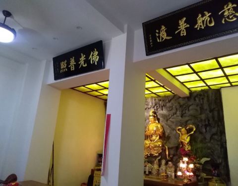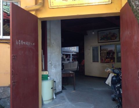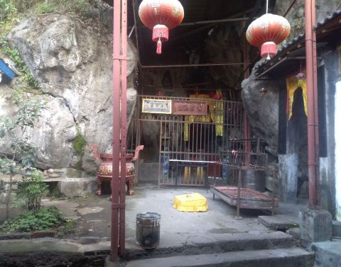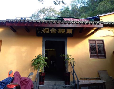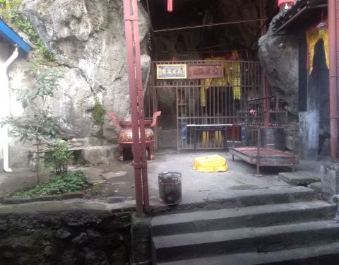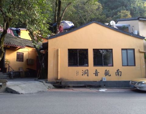 或许你很难想象,这个门面像普通家庭一样、门口还有不少街坊邻居在喝茶聊天的地方就是南观音洞,不过这里确实就是玉皇山一景——南观音洞。
