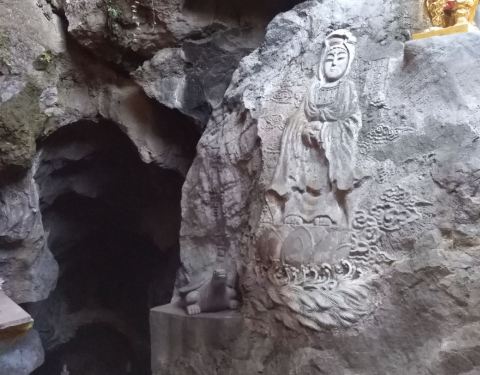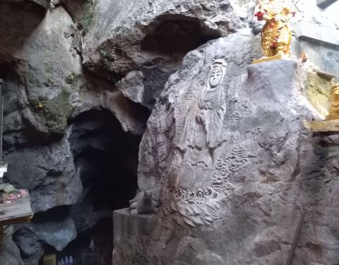 南观音洞里面好多的观音雕像。很多人去这里烧香。