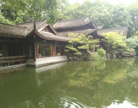 - “花港观鱼”公园西门进来直行,第一个路口右转就到了。始建于上个世纪四十年代,最早是一个什么会所性质的