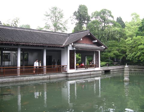 玉泉市杭州植物园的园景之一.玉泉水质清澈,晶莹如玉.池内养有五色巨鲤,所谓"玉泉鱼跃",即指此.玉泉的园林建筑依据三个自然泉池,采用粉墙,漏窗,回廊环接,隔而不断,互相辉映.池边喝茶,歇息,观鱼,真享受也.