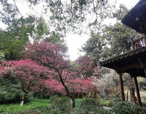 位于植物园里,是杭州出名的看梅花的地方,每年2月末到3月初,梅花盛开,特别绚烂