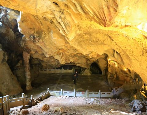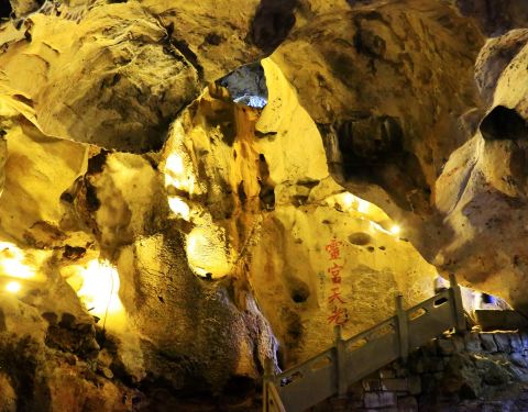 脏兮兮,有人工修建的阶梯和栏杆平台,别的没啥可看。一个人不太敢走,还好手机手电筒能稍微照一点紫来洞是一个黑乎乎的大洞,门口有题字,里面很暗;一个人不太敢走,还好手机手电筒能稍微照一点。脏兮兮,有人工修建的阶梯和栏杆平台,别的没啥可看。