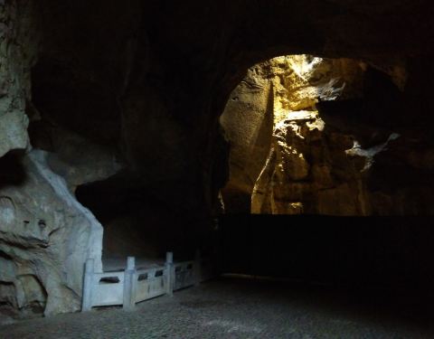 紫来洞是一个黑乎乎的大洞,门口有题字,里面很暗;一个人不太敢走,还好手机手电筒能稍微照一点。脏兮兮,有人工修建的阶梯和栏杆平台,别的没啥可看。