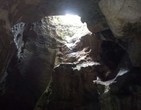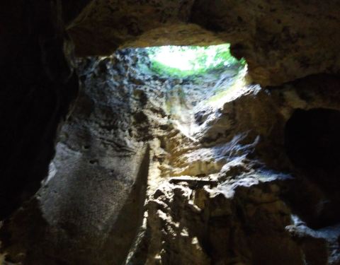 紫来洞位于玉皇山中段,洞不是很大,到构造很独特,有好几处“天窗”,阳光可以直接照入