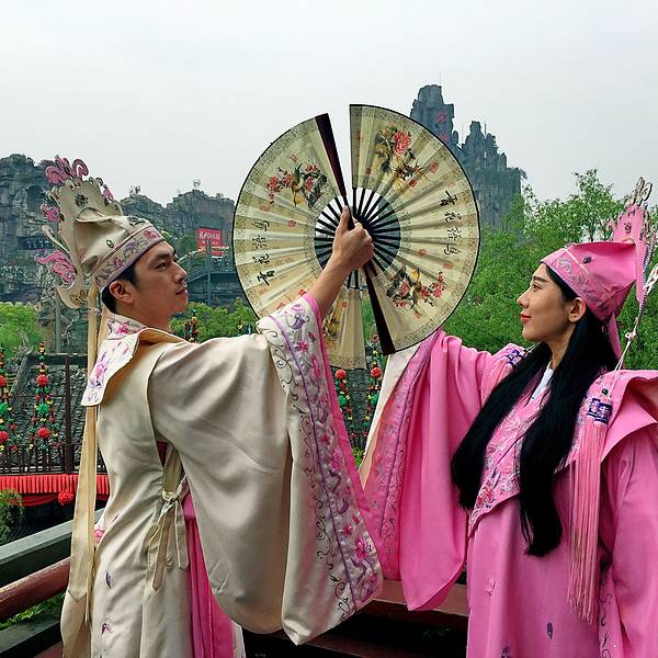 位于黄龙洞景区的月老祠,进入要通过好几层大门,大堂内供着一位面容慈祥的老者,殊不知他是赐予姻缘的神仙。四壁都是壁画,讲述月老的事迹。
