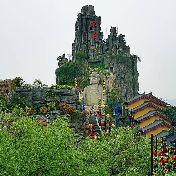 月老祠,情侣们来这里求签,很灵呢~。放眼望去,一尊佛像矗立在古城边。徒步前往,很多游客前来烧香拜佛