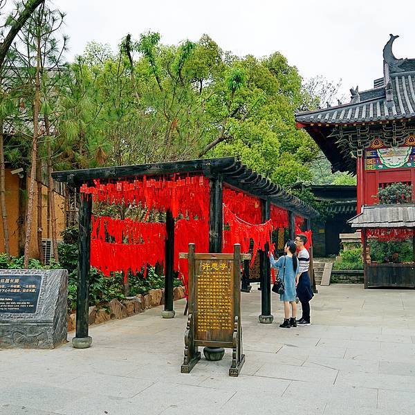 月老祠,情侣们来这里求签,很灵呢~。放眼望去,一尊佛像矗立在古城边。徒步前往,很多游客前来烧香拜佛月老祠,情侣们来这里求签,很灵呢~