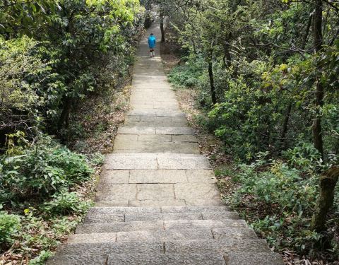十里琅珰是杭州的古道,景色非常优美,连绵的山岭,茂盛的树林,山下郁葱的茶田。入口就在梅家坞对面,中午在梅家坞吃个农家土鸡,饱饱的开始爬山,这是一条徒步爬山线路,没有没票,想爬多久爬多久,可以远路返回,也可以顺着山路去其他龙井,九溪,或者云栖。有点绕有点远,我们本来是这样计划的,但现实是一个下午根本走不到,想去云栖的建议稍微爬一段然后远路返回梅家坞,做公交过去。山里面没导航信号,但是岔路口的地方都会有地图指示,这点很贴心。然后来说说景色,入口处一小段,颇具农家之美,后面会有一段茶园,也挺美的,没什么人,可以各种摆拍。再后面就是普通的山路,没什么特色,但锻炼身体呼吸新鲜空气都不错一路走过会让你觉得神清气爽,沿着石牌拾级而上两边都是茶园,和远山呼应的绿色,偶见除草的农夫,一派和谐的田园风光。春天来这边一定可以看到最美的景色。爬到顶俯瞰整个村落和梯田茶田美不胜收,掩映在茶田间的房屋也成了一道风景。山间景色很美,能够看到深深的山谷、斑斓的野花和梯田状的茶园,比上山时一成不变的台阶和山林好多了。中段路变成了窄窄的石板路,沿着高高的山脊铺就,路两边不再是繁茂的树林,而是次第而下的茶园,行走其间让人觉得连心胸都开阔起来。但有一些山路还是比较陡峭的,建议下雨天就不要来了,比较危险。