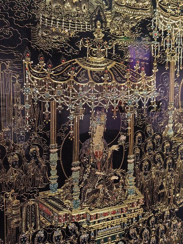 刺绣是心手相连的艺术,竹制靠手棒最好用盐水浸泡以防虫蛀。金银线以真丝为原料,以土丝生胚染成朱色,称为“裁线”。锁针是中国最早的针法,也称“辫子股”。