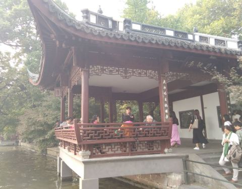月波亭就是一座凉亭,在这里休息的游客很多,一边吹着凉风,一边欣赏西湖美景,很是惬意