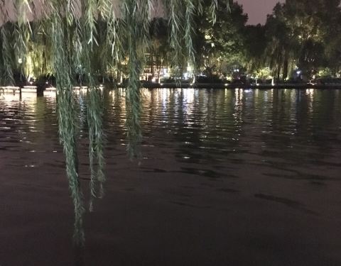 西湖东岸的景观带,沿湖观景风光无限,晚上的音乐喷泉不容错过。